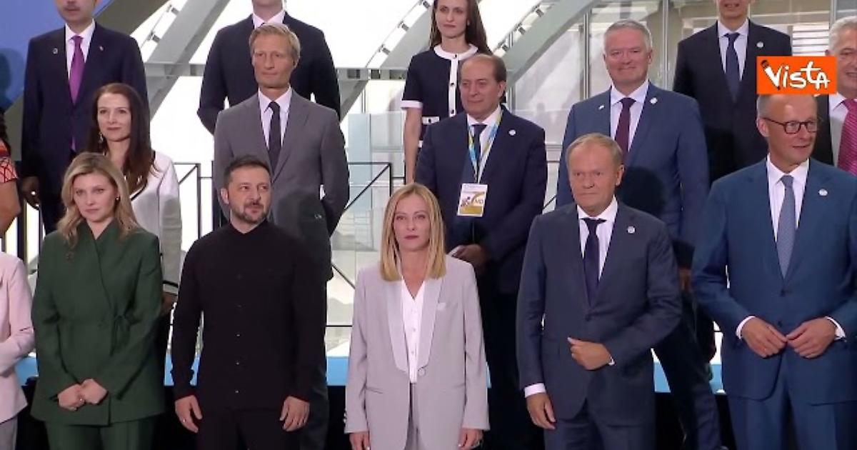 (Agenzia Vista) Roma, 10 luglio 2025 Si svolge alla Nuvola di Fuksas all'Eur la conferenza sulla ricostruzione dell'Ucraina a Roma, ecco l'arrivo dei leader. Ecco la foto di gruppo dei leader. Chigi Fonte: Agenzia Vista / Alexander Jakhnagiev