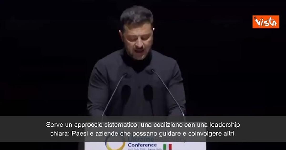(Agenzia Vista) Roma, 10 luglio 2025 "Ora dobbiamo costruire una coalizione per la ricostruzione. Che questo sia il momento in cui la avviamo. Sappiamo cosa ha distrutto la Russia e sappiamo cosa servirà per ricostruire l’Ucraina, il popolo ucraino, le nostre vite. Serve un approccio sistematico, una coalizione con una leadership chiara: Paesi e aziende che possano guidare e coinvolgere altri. Serve anche un piano di ricostruzione chiaro. Pensate al ruolo che ha avuto il Piano Marshall nella ricostruzione e trasformazione dell’Europa. È anche grazie a quello che l’Europa ha goduto di pace e crescita economica per così tanti decenni" così il Presidente dell'Ucraina Volodymyr Zelensky, intervenendo in apertura alla Conferenza sulla Ricostruzione dell'Ucraina alla Nuvola di Fuksas a Roma. Fonte: Agenzia Vista / Alexander Jakhnagiev
