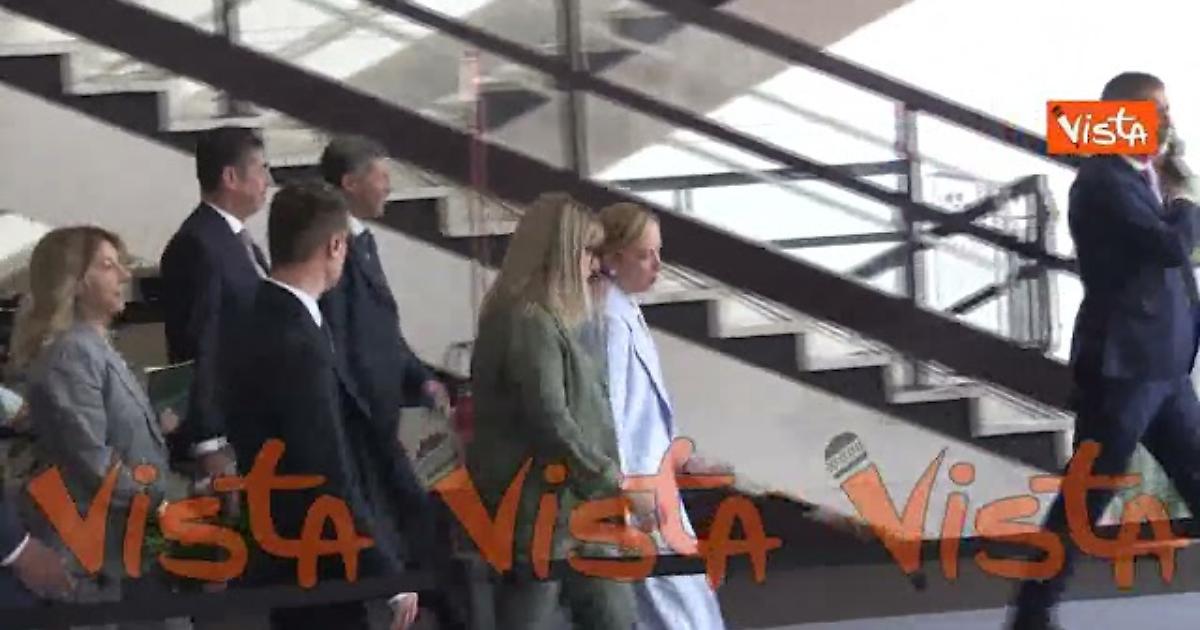 La premier Meloni lascia il Congresso della Cisl al Palazzo dei Congressi