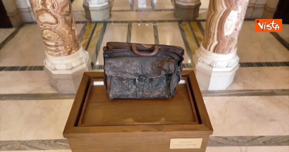 Ecco la borsa di Paolo Borsellino esposta a Montecitorio, quella che aveva con sè il giorno della Strage di Via D'Amelio, il 19 luglio 1992.