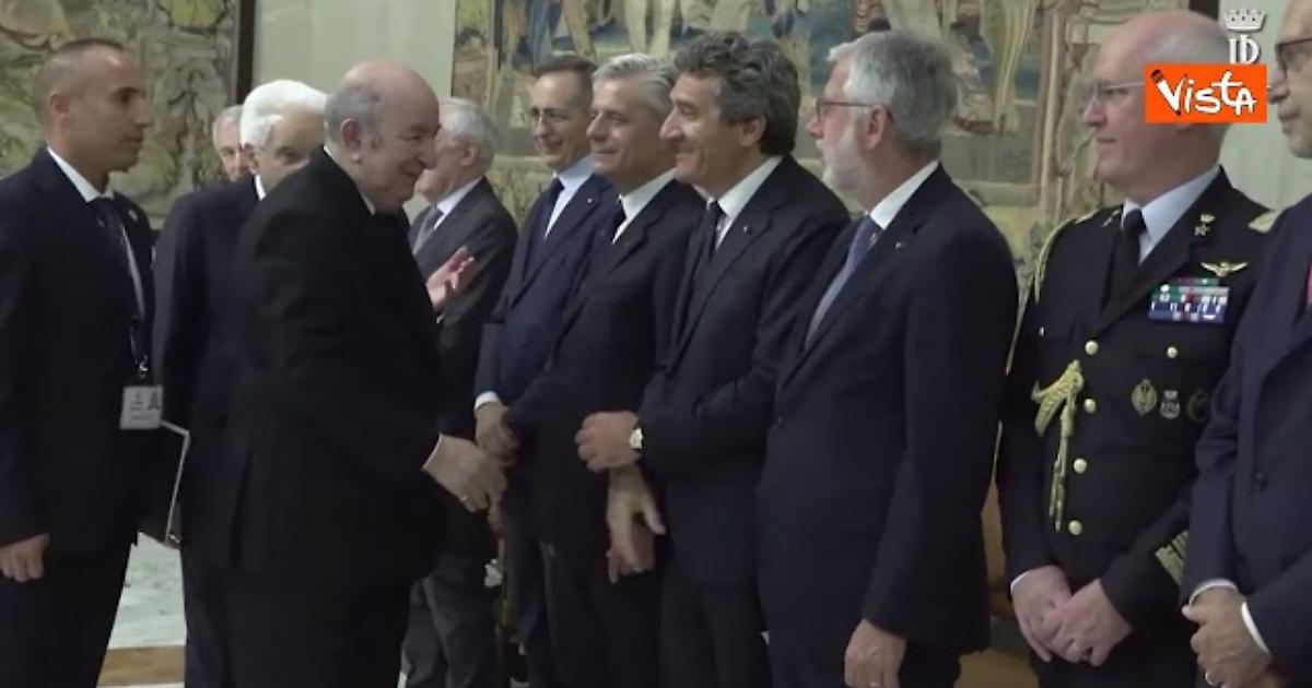 L'abbraccio tra Mattarella e Presidente Repubblica algerina Abdelmadjid Tebboune al Quirinale