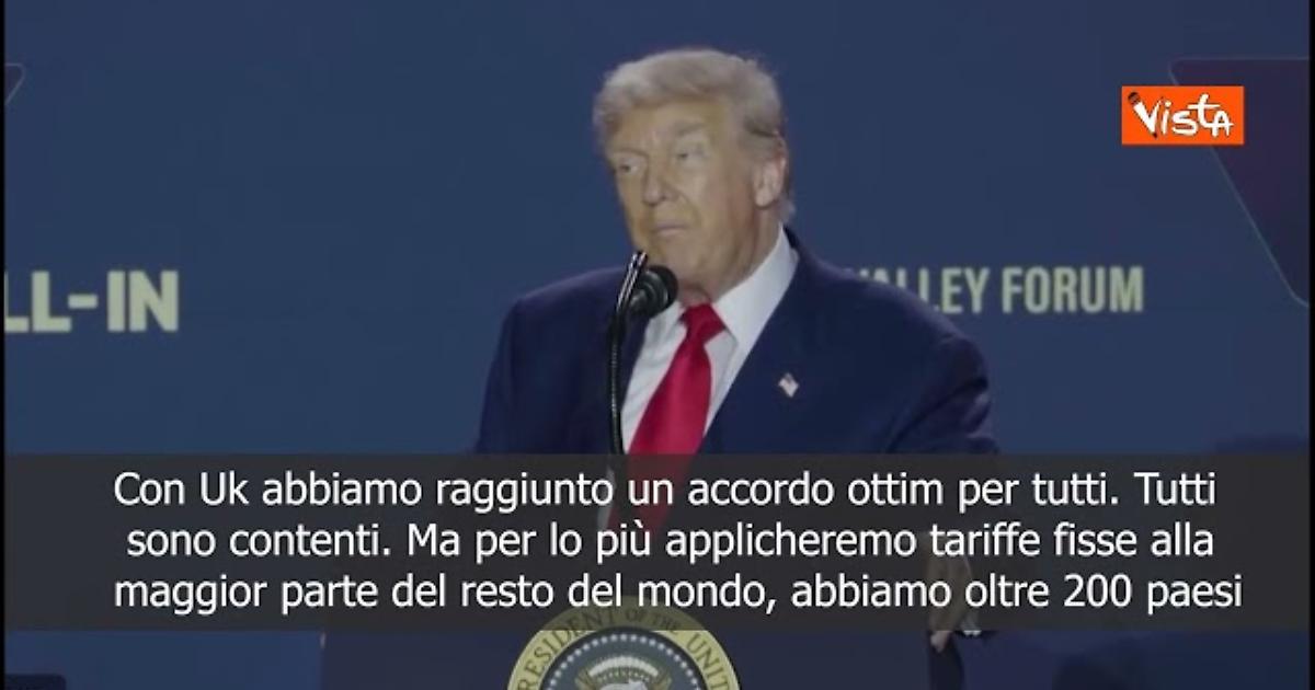 “Ieri abbiamo anche concluso un accordo con Filippine e Indonesia, che in entrambi i casi apriranno i loro Paesi, e stiamo completando il nostro accordo con la Cina. E come sapete, con il Regno Unito abbiamo raggiunto un accordo che era un ottimo affare per tutti. Tutti sono contenti.” Così il presidente degli Stati Uniti Donald Trump.