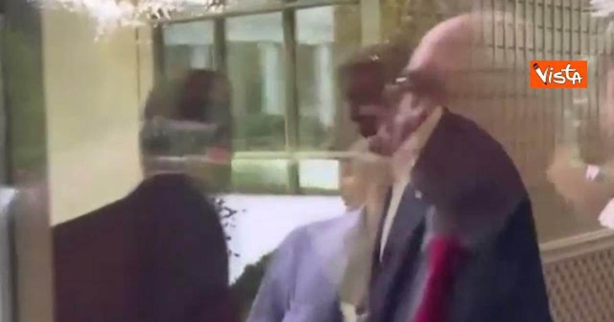 Il Presidente degli Stati Uniti Donald Trump, prima dell'incontro con la stampa, entrando alla Casa Bianca, apre e tiene aperta la porta per il suo agente dei servizi segreti.