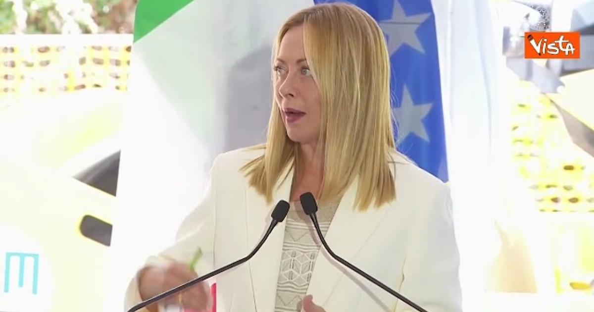 (Agenzia Vista) Macerata, 04 agosto 2025 "Parliamo di un progetto estremamente strategico nel quale noi abbiamo creduto. Abbiamo lavorato insieme per costruire una visione unitaria con la Regione e anche con i sindaci e le comunità territoriali. Ovviamente abbiamo lavorato per individuare le risorse necessarie. Oggi segna l'avvio della realizzazione del tratto sud della Pedemontana, che in futuro collegherà le province di Macerata, Fermo e Ascoli Piceno, con la possibilità anche di connettersi all'Abruzzo, a Roma e a Spoleto. L'infrastruttura metterà al centro questo territorio. Il primo obbiettivo e tirare fuori le Marche da questo isolamento insensato" così la premier Giorgia Meloni intervenendo all'inaugurazione dei lavori della Pedemontana Sud delle Marche a Cessapalombo (Macerata). Fonte: Agenzia Vista / Alexander Jakhnagiev