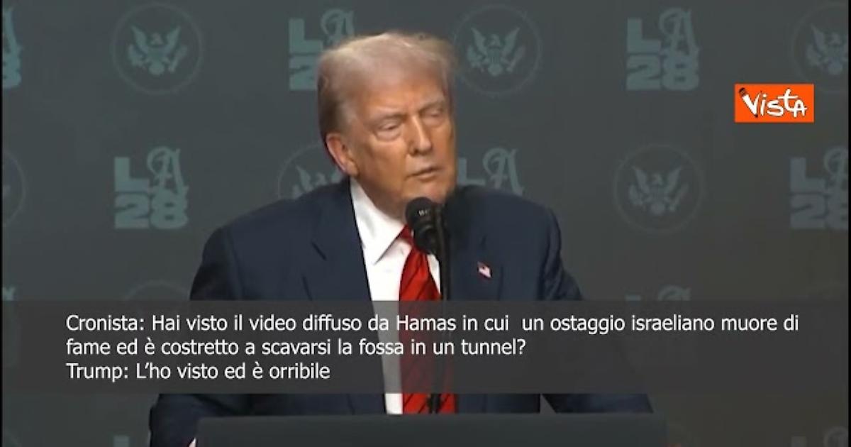 “L'ho visto, penso che sia orribile.” Così il Presidente degli Stati Uniti Donald Trump risponde a un cronista che gli chiede se ha visto il video diffuso da Hamas, in cui un ostaggio israeliano muore di fame ed è costretto a scavarsi la fossa in un tunnel.