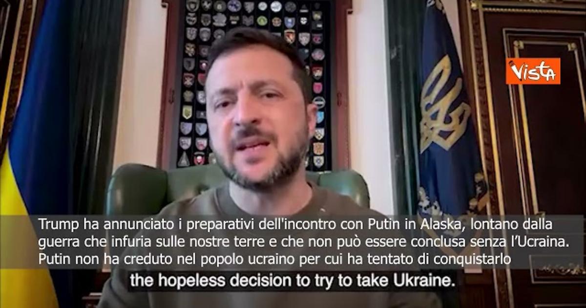 (Agenzia Vista) Kiev, 09 agosto 2025 “Trump ha annunciato la preparazione dell'incontro con Putin in Alaska. […] Questa guerra non può terminare senza l'Ucraina. E' un grande errore non tenere conto del popolo ucraino. Non regaleremo la nostra terra ai Russi.” Così il Presidente ucraino Volodymyr Zelensky. Courtesy: Telegram Zelensky Fonte: Agenzia Vista / Alexander Jakhnagiev