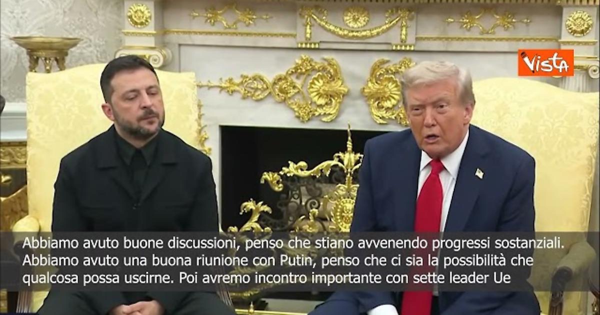 “Abbiamo avuto buone discussioni e buone conversazioni, penso che i progressi stiano avvenendo, progressi molto sostanziali. ” Così il Presidente statunitense Donald Trum, insime al Presidente ucraino Volodymyr Zelensky nello studio ovale della Casa Bianca.