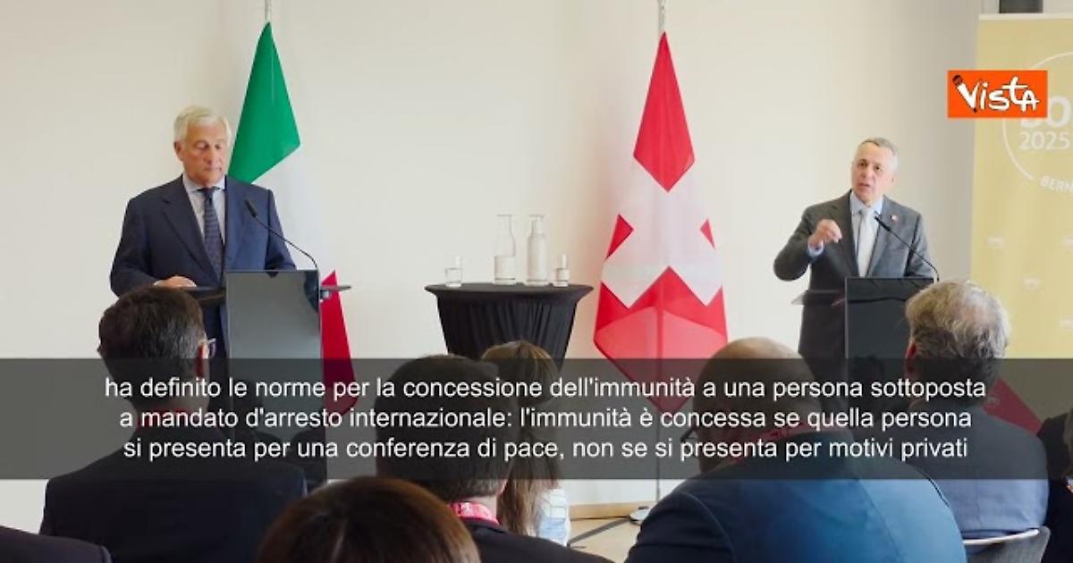 "Concederemo l'immunità al Presidente russo Vladimir Putin, malgrado la sua incriminazione presso la Corte penale internazionale, a condizione che si presenti per una conferenza di pace. L'anno scorso, il Governo federale ha definito le norme per la concessione dell'immunità a una persona sottoposta a mandato d'arresto internazionale: l'immunità è concessa se quella persona si presenta per una conferenza di pace, non se si presenta per motivi privati", lo dice Ignazio Cassis, Ministro degli Esteri della Svizzera, in conferenza stampa congiunta con l'omologo italiano Tajani a Berna.