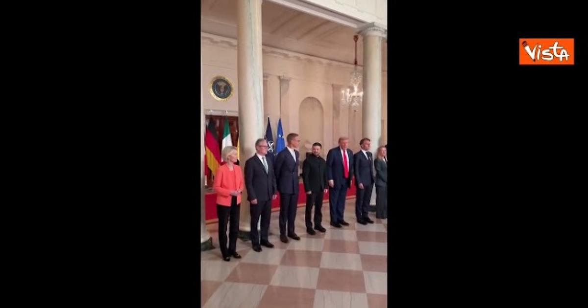 Trump mostra ai leader europei il dipinto con l'iconica immagine dell'attentato di Butler