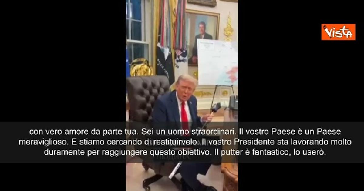 Zelenskyj ha regalato a Trump un putter da golf regalatogli dal sergente minore Kostiantyn Kartavtsev delle forze armate ucraine. Trump ha accettato con gratitudine il regalo e ha registrato un video di risposta ringraziando il soldato ucraino, che ha perso una gamba in guerra, per il putter: “Kostiantyn, prima di tutto, ho appena guardato il tuo tiro. Sono bravo a golf e il tuo tiro è fantastico. Molto presto tornerai ad essere un ottimo giocatore di golf. Questo regalo è bellissimo, realizzato con amore sincero e donatomi con vero amore da parte tua. Sei un uomo straordinari. Il vostro Paese è un Paese meraviglioso. E stiamo cercando di restituirvelo. Il vostro Presidente sta lavorando molto duramente per raggiungere questo obiettivo. Il putter è fantastico, lo userò”.