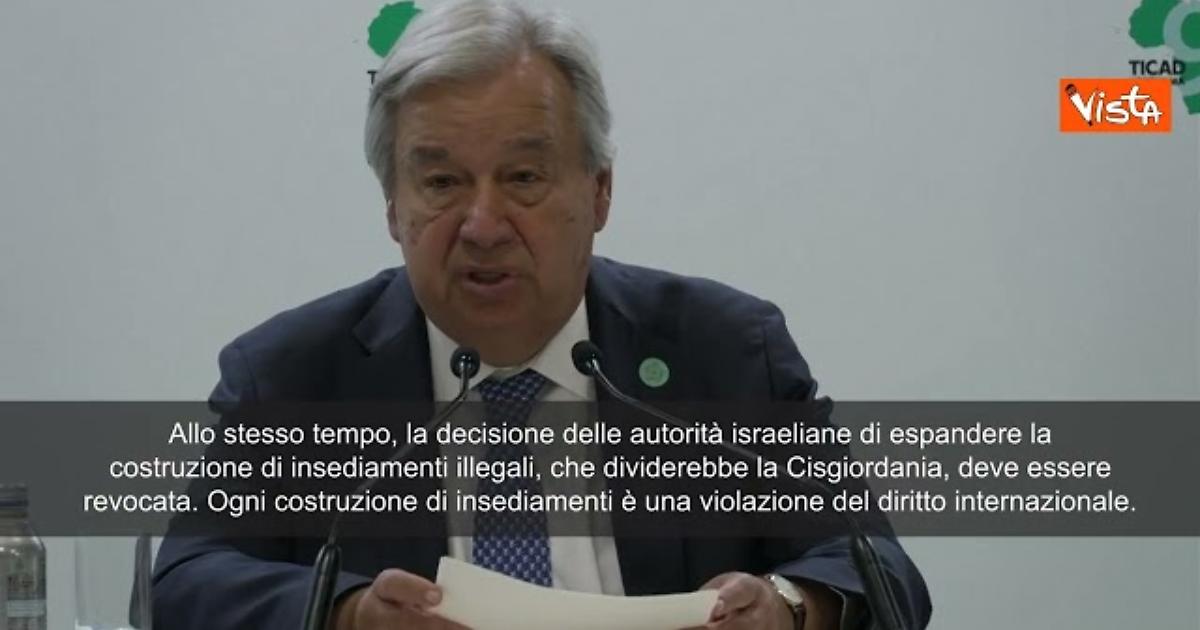 "È fondamentale raggiungere immediatamente un cessate il fuoco a Gaza e il rilascio incondizionato di tutti gli ostaggi, ed evitare le morti e le distruzioni di massa che un'operazione militare contro Gaza causerebbe inevitabilmente. Allo stesso tempo, la decisione delle autorità israeliane di espandere la costruzione di insediamenti illegali, che dividerebbe la Cisgiordania, deve essere revocata. Ogni costruzione di insediamenti è una violazione del diritto internazionale". Così il segretario generale delle Nazioni Unite, Antonio Guterres, a Yokohama.