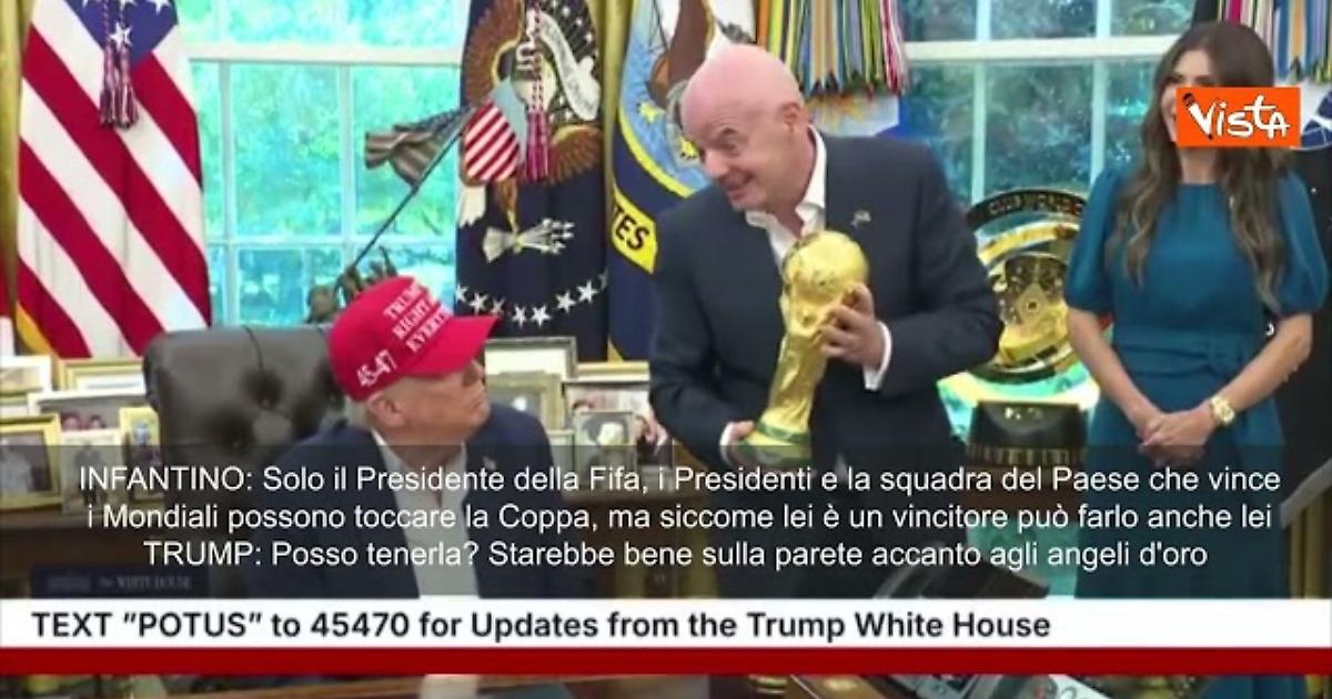 Siparietto Trump-Infantino con la Coppa del mondo: "Lei è un vincente", "Posso tenerla?"