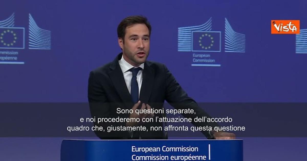 (Agenzia Vista) Bruxelles, 26 agosto 2025 “Penso sia utile ricordare quanto abbiamo affermato più volte: è diritto sovrano dell’Ue e dei suoi Stati membri regolamentare le attività economiche sul nostro territorio, che sono coerenti con i nostri valori democratici. Questo non faceva parte del nostro recente accordo con gli Stati Uniti. Sono questioni separate, e noi procederemo con l’attuazione dell’accordo quadro che, giustamente, non affronta questa questione”. Così il portavoce della Commissione europea, Thomas Regnier, nel consueto briefing con la stampa a Bruxelles. Ebs Fonte: Agenzia Vista / Alexander Jakhnagiev