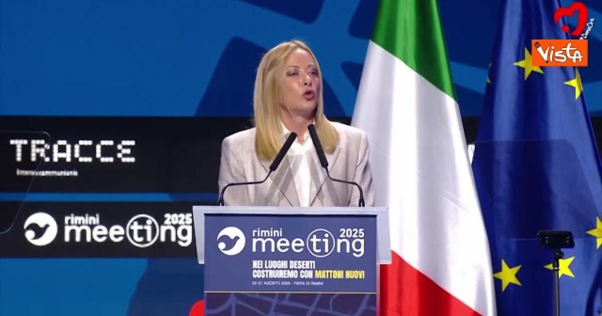 (Agenzia Vista) Rimini, 27 agosto 2025 "Non abbiamo esitato un solo minuto a sostenere il diritto all'autodifesa di Israele dopo l'orrore del 7 ottobre ma allo stesso tempo non possiamo tacere ora di fronte a una reazione che è andata oltre il principio di proporzionalità mietendo troppe vittime innocenti arrivando a coinvolgere anche le comunità cristiane". Così la Presidente del Consiglio Giorgia Meloni intervenendo al Meeting di Rimini. Meeting Rimini Fonte: Agenzia Vista / Alexander Jakhnagiev