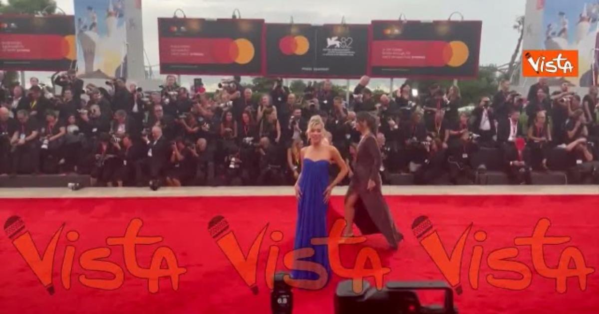 Ludovica Frasca sfila sul red carpet dell'82esima Mostra del Cinema di Venezia con un lungo abito blu elettrico.