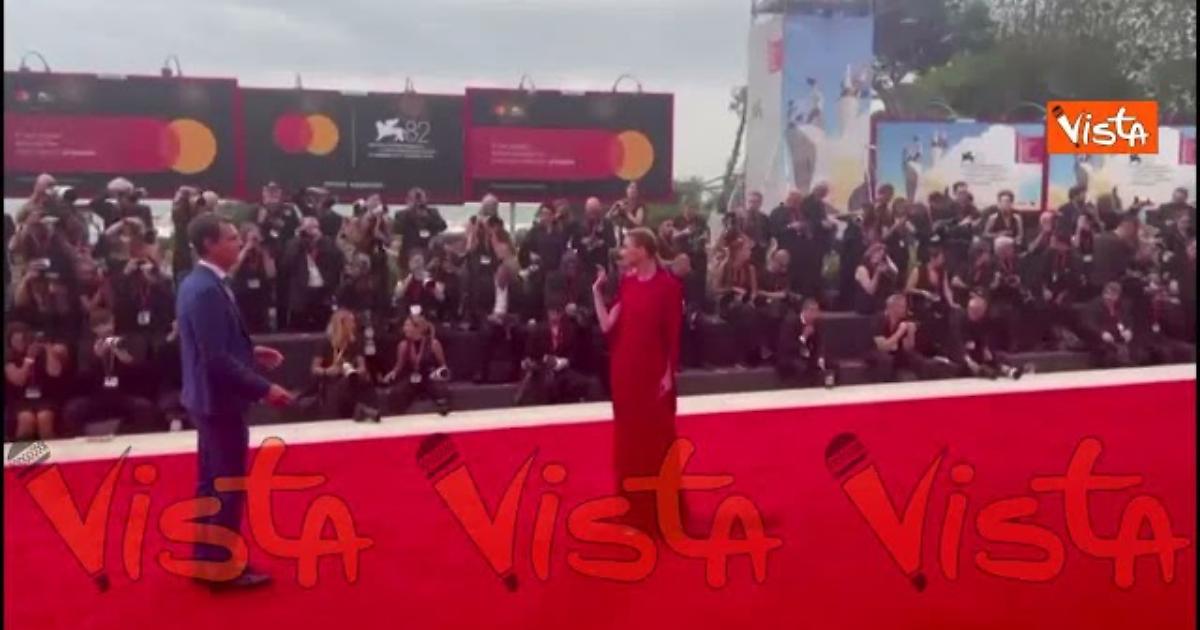 La conduttrice dell'82esima Mostra del Cinema di Venezia Emanuela Fanelli sfila sul red carpet con un abito rosso per la seconda serata della kermesse.