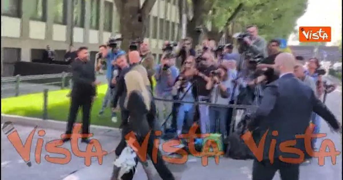 Ha aperto la camera ardente dello stilista Giorgio Armani, morto all'età di 91 anni. Le immagini dell'arrivo della stilista Donatella Versace con un mazzo di fiori.