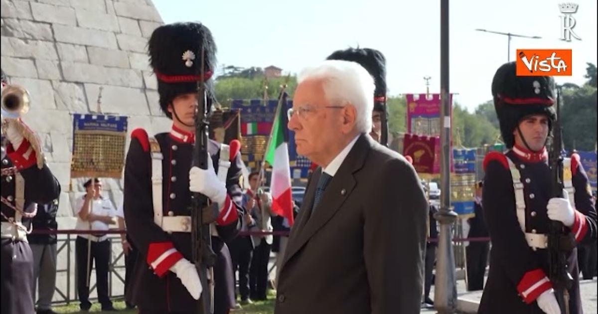 Il Presidente della Repubblica, Sergio Mattarella depone due corone d’alloro a Porta San Paolo e al Parco della Resistenza a Roma. / Quirinale