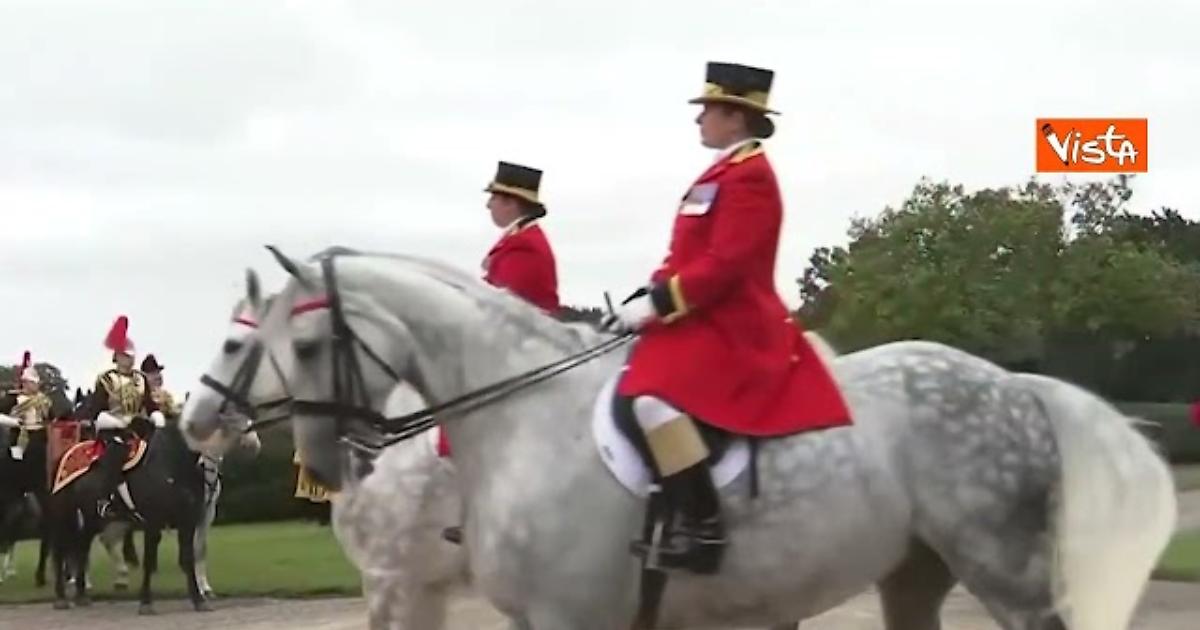 Trump arriva al Castello di Windsor a bordo di una carrozza trainata da cavalli bianchi