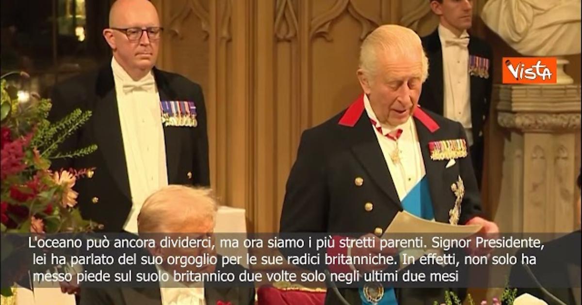 Re Carlo III scherza con Trump al banchetto reale: Abbiamo campi da golf splendidi