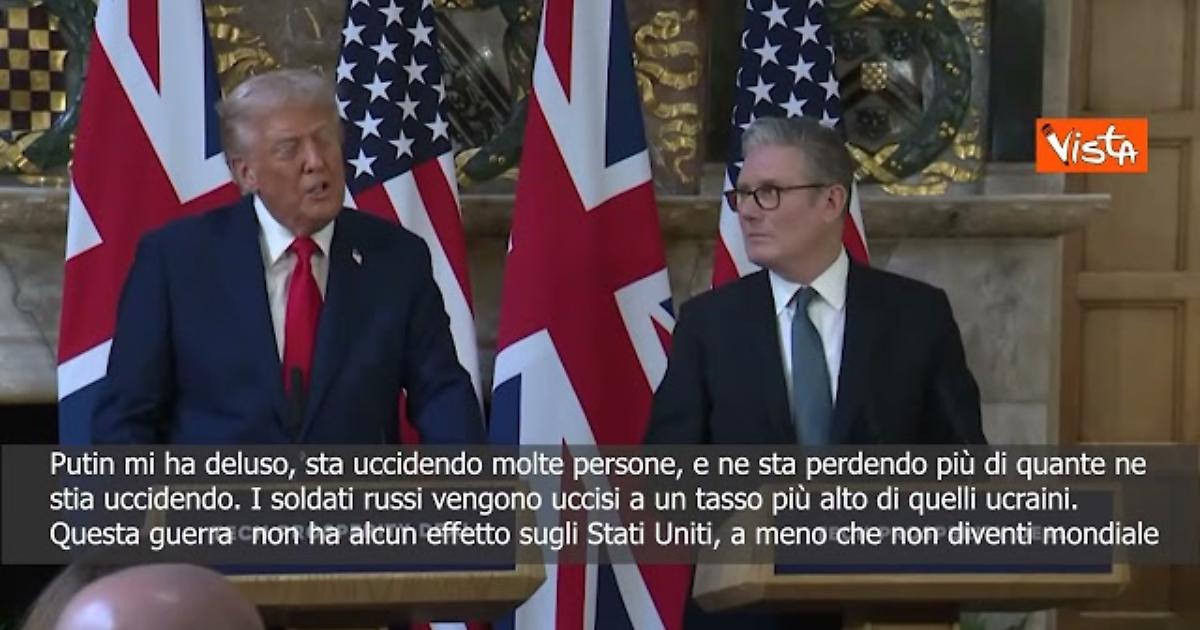 “Mi ha deluso, sta uccidendo molte persone, e ne sta perdendo più di quante ne stia uccidendo. Voglio dire, francamente, i soldati russi vengono uccisi a un tasso più alto di quelli ucraini, ma sì, mi ha deluso.” Così il Presidente degli Stati Uniti, Donald Trump, in una conferenza stampa congiunta con il Primo Ministro Keir Starmer alla tenuta di Chequers.