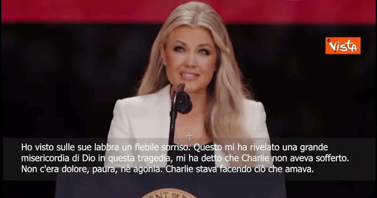 (Agenzia Vista) Roma, 22 settembre 2025 “Non c'era dolore. Non c'era paura, non c'era agonia. Charlie stava facendo ciò che amava, discutere e dibattere nel campus, combattere per il Vangelo..” Così la vedova di Charlie Kirk, l'attivista Maga ucciso in un campus universitario, nello Utah, durante i funerali del marito. Cortesy: The White House Fonte: Agenzia Vista / Alexander Jakhnagiev