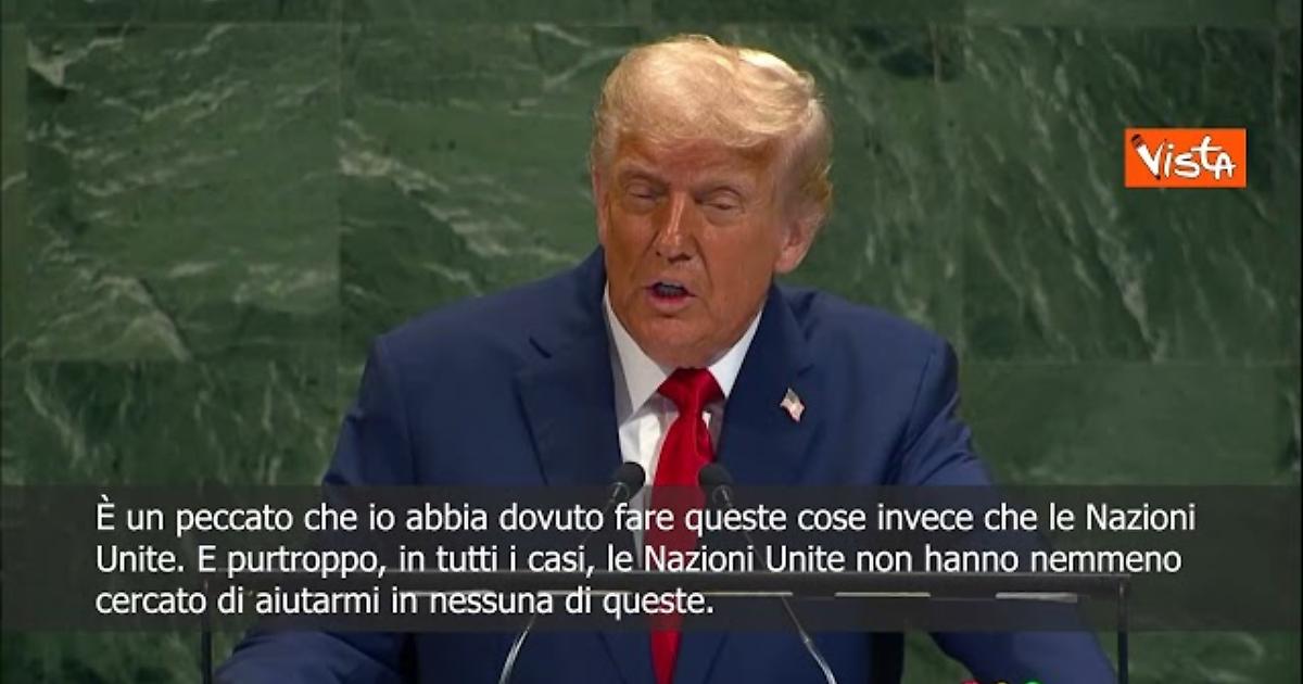 “Sono molto onorato di averlo fatto. È un peccato che io abbia dovuto fare queste cose invece che le Nazioni Unite. E purtroppo, in tutti i casi, le Nazioni Unite non hanno nemmeno cercato di aiutarmi in nessuna di queste. Ho posto fine a sette guerre, ho avuto a che fare con i leader di ognuno di questi paesi e non ho mai ricevuto una telefonata dalle Nazioni Unite, che si offrissero di aiutare a finalizzare l'accordo.” Così il Presidente degli Stati Uniti, Donald Trump, durante l'Assemblea Generale dell'Onu, a New York.