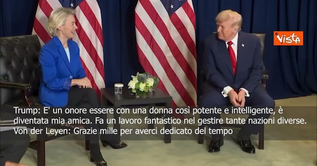 Trump dopo le critiche all'Ue incontra Von der Leyen: Donna intelligente, fa lavoro fantastico