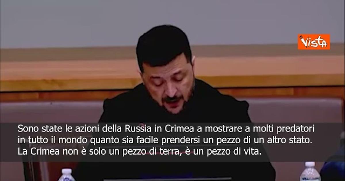 “Sono state le azioni della Russia in Crimea a mostrare a molti predatori in tutto il mondo quanto sia facile prendersi un pezzo di un altro stato.” Così il Presidente ucraino Volodymyr Zelensky durante il suo intervento al vertice sulla Crimea, a margine dell'Assemblea generale dell'Onu, a New York.