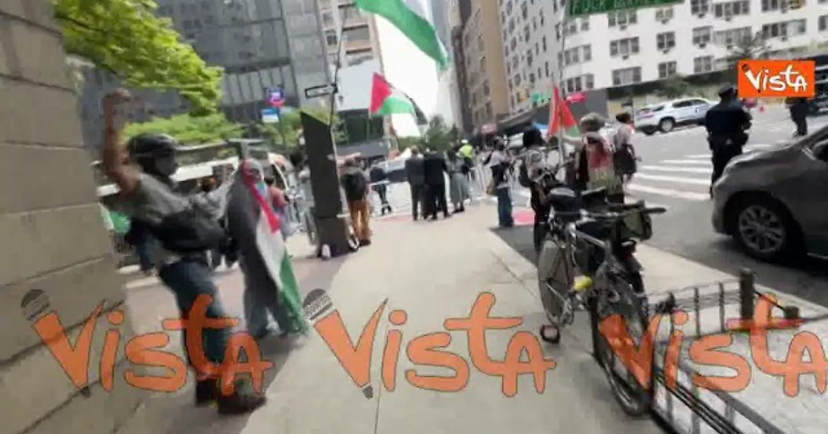 Ecco le immagini delle bandiere della Palestina sventolate per le vie di New York da un gruppo di attivisti.