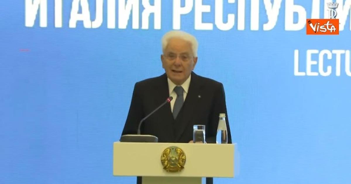 "Italia e Kazakhstan condividono la responsabilità di contribuire a percorsi di dialogo e che aiutino a mantenere la pace e la stabilità, a promuovere lo sviluppo nel rispetto dei principi di giustizia, equità, solidarietà, leale collaborazione. In tale spirito, apprezziamo pienamente il costante riferimento delle istituzioni kazake alla centralità della Carta delle Nazioni Unite e dei suoi valori, quale bussola per affrontare ogni crisi e ogni conflitto da una prospettiva equilibrata e costruttiva" così il Presidente della Repubblica Sergio Mattarella durante la sua visita all'Accademia dell'Amministrazione di Astana, in Kazakistan.