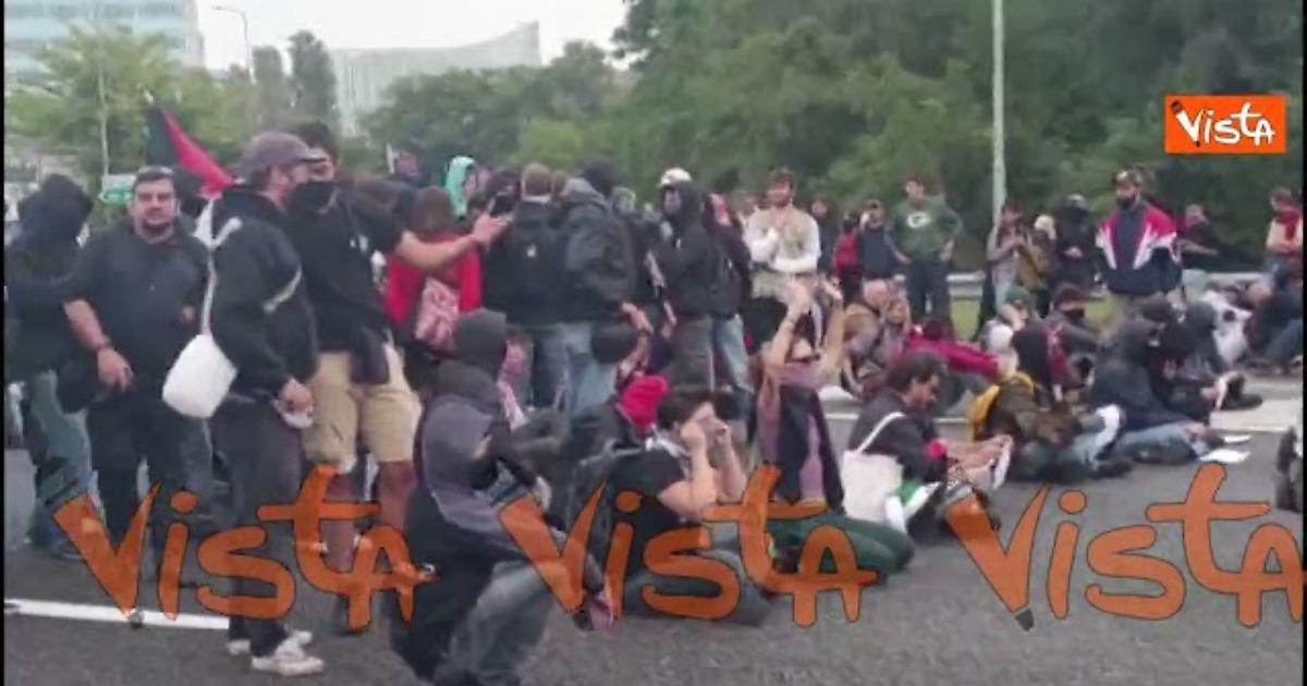 Corteo pro Gaza in Tangenziale est a Milano, la Polizia abbassa gli scudi, i manifestanti applaudono