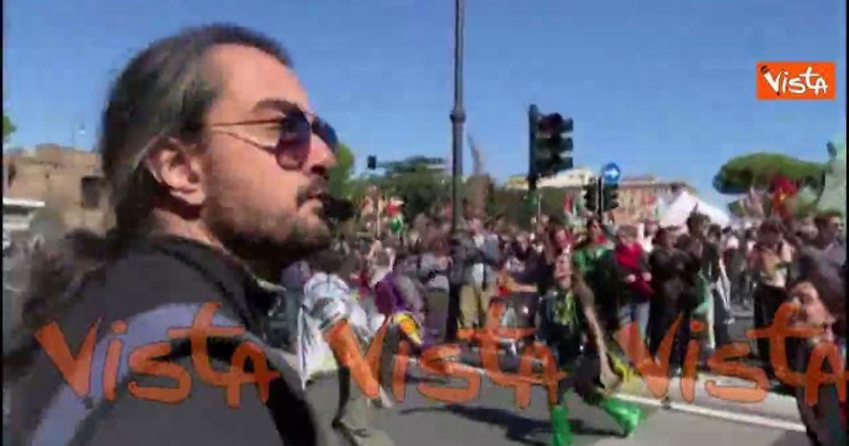 Una coreografia in strada con danza e suono di tamburi al corteo pro Gaza a Roma