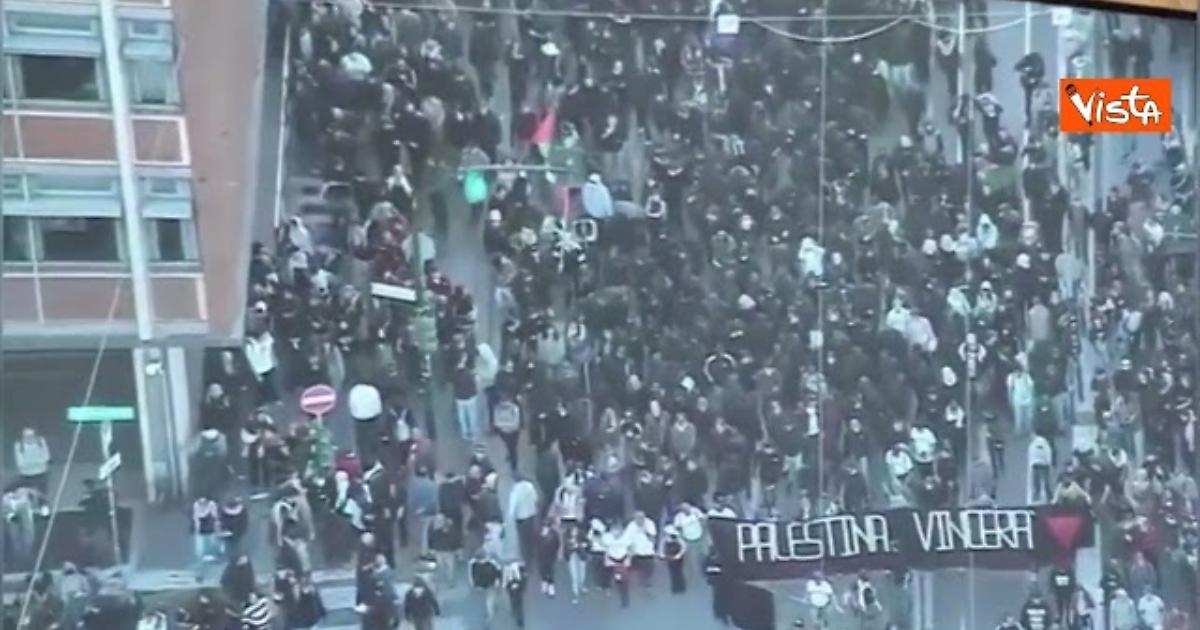 La manifestazione pro Gaza a Roma ripresa dall'alto dai velivoli delle forze dell'ordine. In migliaia sono scesi in piazza all'indomani dello sciopero generale per la Flotilla.