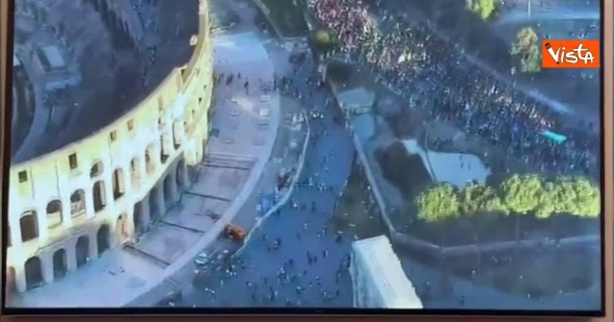 La manifestazione pro Gaza a Roma ripresa dall'alto dai velivoli delle forze dell'ordine. In migliaia sono scesi in piazza all'indomani dello sciopero generale per la Flotilla.