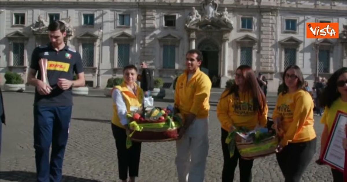 Coldiretti e Campagna Amica hanno voluto celebrare i campioni del mondo di pallavolo, maschile e femminile, in occasione della cerimonia al Quirinale con il Presidente della Repubblica Sergio Mattarella, donando due ceste con i prodotti simbolo del Made in Italy. Un gesto di riconoscenza per lo straordinario risultato sportivo e, al tempo stesso, un omaggio alle eccellenze italiane che, come nello sport, nascono da impegno, passione e qualità. L’iniziativa ha rappresentato anche l’occasione per ribadire la lunga collaborazione tra Coldiretti, Campagna Amica e la Federazione Italiana Pallavolo, che prosegue attraverso il progetto educativo-sportivo Volley S3 che vede tra i protagonisti anche l’ex campione azzurro Andrea Lucchetta. Promosso dalla FIPAV, il progetto mira a sensibilizzare bambini e famiglie sull’importanza di un’alimentazione sana e consapevole. In quattro anni ha coinvolto, da Nord a Sud del Paese, oltre 60 mila bambini, unendo gioco, educazione alimentare e valorizzazione delle produzioni agricole italiane. Valori condivisi che trovano espressione anche nel vademecum “Le 5 regole dei campioni a tavola”, ideato da Coldiretti e Campagna Amica e incorniciato nel tricolore, consegnato questo pomeriggio alla capitana Anna Danesi e al vice capitano Simone Anzani. Un piccolo manuale pensato per insegnare ai più giovani a “giocare di squadra” anche a tavola, attraverso messaggi semplici e immediati ispirati al linguaggio della pallavolo: “servi energia buona” – frutta, cereali e prodotti italiani di stagione per partire col pieno di energia; “alza la qualità” – proteine e verdure della nostra filiera per forza e resistenza; “schiaccia la disidratazione” – acqua sempre in campo, prima e dopo ogni set; “difendi la salute” – meno zuccheri e cibi industriali, più olio extravergine d’oliva e semplicità; “gioca di squadra con il tuo corpo” – mangia con regolarità e rispetta i tempi del recupero