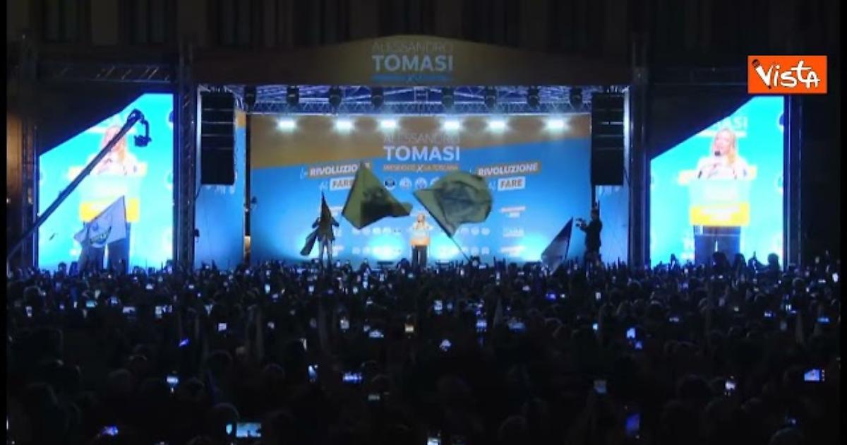(Agenzia Vista) Firenze, 10 ottobre 2025 Vi voglio bene ragazzi. Solo per l'amore che ho per voi riesco a fare la vita che sto facendo: solo per amore. Questo entusiasmo fa la differenza". Lo ha detto la premier Giorgia Meloni alla chiusura della campagna elettorale di Alessandro Tomasi a Firenze, dove è stata accolta sul palco dai cori "C'è solo un Presidente". FdI Fonte: Agenzia Vista / Alexander Jakhnagiev