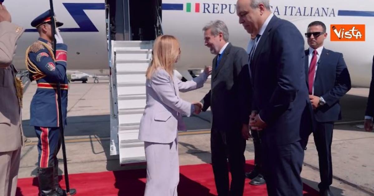 La Presidente del Consiglio, Giorgia Meloni, arriva a Sharm el-Sheikh in Egitto, per partecipare alla cerimonia della firma del Piano di pace per il Medio Oriente.