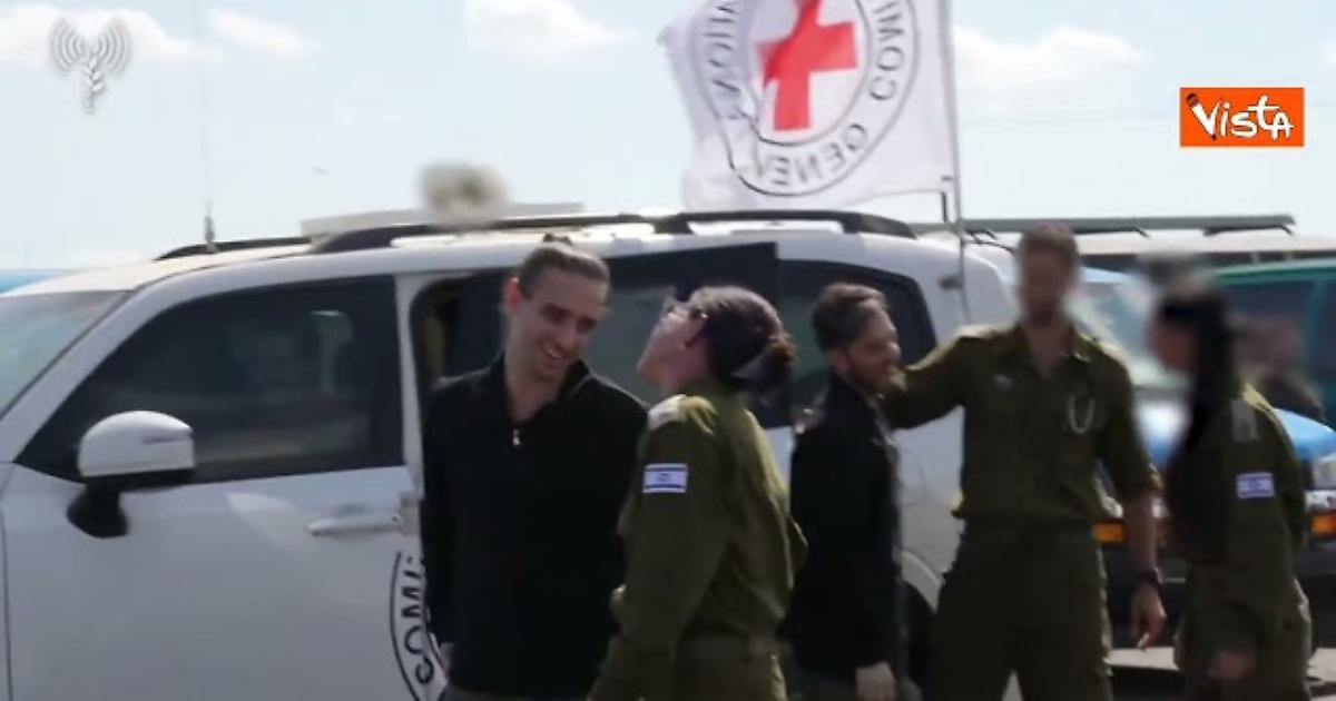 Gli ostaggi israeliani liberati da Hamas accolti dall'Idf al checkpoint