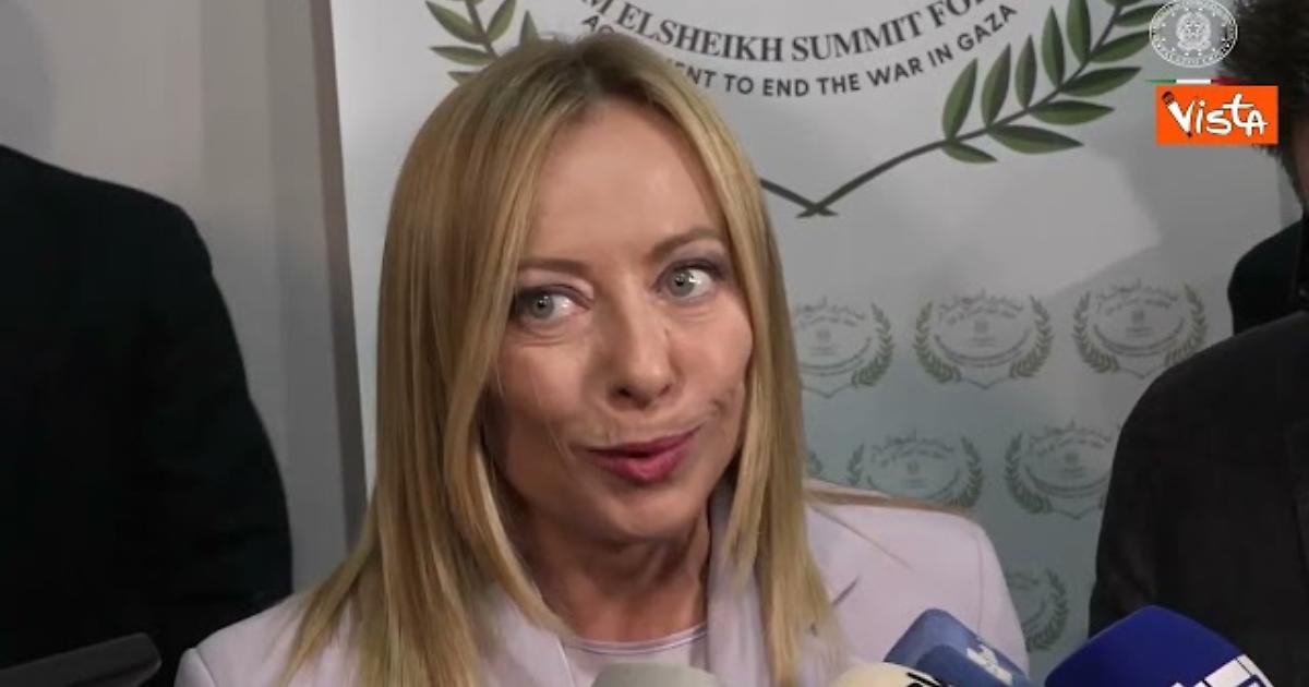 (Agenzia Vista) Egitto, 13 ottobre 2025 "Chiaramente se viene attuato il piano certo che è più vicino" il riconoscimento della Palestina da parte dell'Italia. Lo ha affermato la premier Meloni in Egitto. Chigi Fonte: Agenzia Vista / Alexander Jakhnagiev