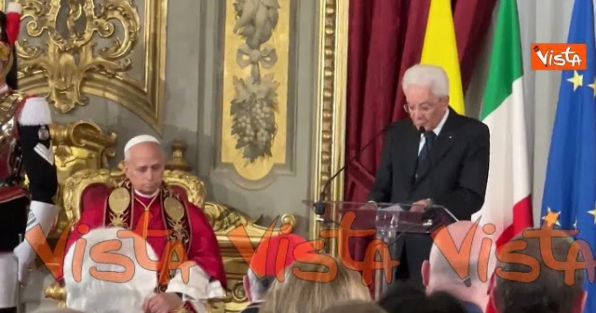 (Agenzia Vista) Roma, 14 ottobre 2025 "Le esprimo, Santità, la riconoscenza più alta per l’insegnamento e l’orizzonte presentati dalla Dilexi te, l’Esortazione Apostolica diffusa nei giorni scorsi, che sollecita alla indispensabile trasformazione di mentalità. Non vogliamo arrenderci alla prospettiva di una società dominata da oligarchi o, meglio, da privilegiati, in base al censo, alla spregiudicatezza, all’indifferenza verso gli altri, che si profila rimuovendo i valori di uguaglianza, di solidarietà, di libertà. Accanto a questi – in contrasto con tante generose iniziative, anche in Italia - vi sono fenomeni sovente mossi dalla paura dello sconosciuto, dall’arroccamento di fronte a processi strutturali di rilevanza globale che stanno modificando le nostre realtà: il cambiamento climatico, le migrazioni, lo stesso uso delle nuove tecnologie". Lo ha detto il Presidente della Repubblica in una dichiarazione dopo aver accolto Papa Leone XIV al Quirinale. Fonte: Agenzia Vista / Alexander Jakhnagiev