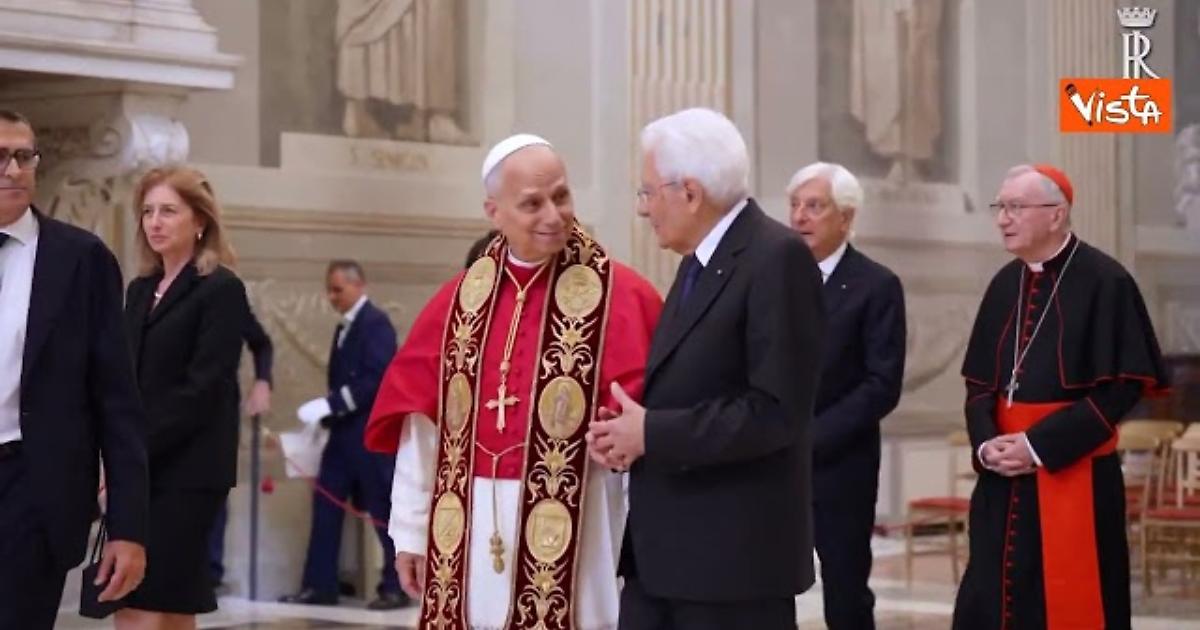 (Agenzia Vista) Roma, 14 ottobre 2025 Il Presidente della Repubblica, Sergio Mattarella, ha ricevuto al Palazzo del Quirinale Sua Santità Leone XIV, in Visita Ufficiale. Papa Leone XIV è stato accolto dal Presidente Mattarella nel Cortile d’Onore con gli Onori militari. Dopo aver effettuato una sosta alla Cappella dell’Annunziata, il Presidente e il Papa hanno raggiunto la Sala degli Specchi dove hanno incontrato il Presidente del Senato, Ignazio La Russa, il Presidente della Camera dei Deputati, Lorenzo Fontana, il Presidente del Consiglio dei Ministri, Giorgia Meloni, il Presidente della Corte Costituzionale, Giovanni Amoroso, con i rispettivi Segretari Generali. Quirinale Fonte: Agenzia Vista / Alexander Jakhnagiev