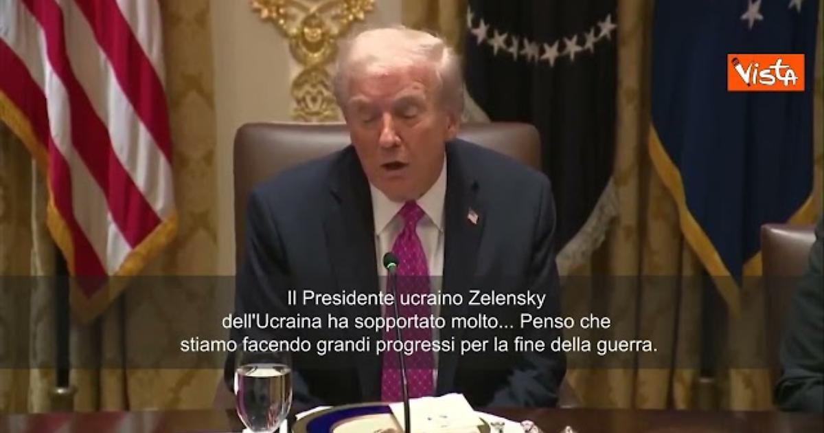 "È un onore stare con un leader molto forte, un uomo che ha attraversato molte difficoltà e che ho imparato a conoscere molto bene. Il Presidente ucraino Zelensky dell'Ucraina ha sopportato molto... Penso che stiamo facendo grandi progressi per la fine della guerra." Lo ha detto Trump ricevendo Zelensky alla Casa Bianca.
