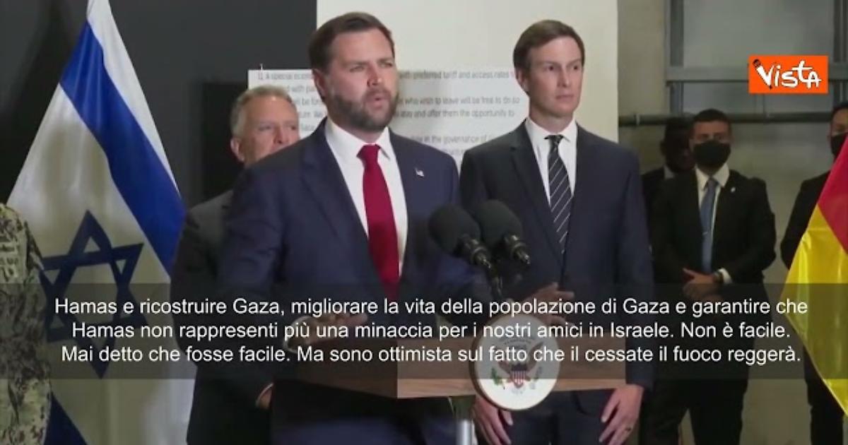 (Agenzia Vista) Israele, 21 ottobre 2025 "Sappiamo che Hamas deve rispettare l'accordo, e se non lo rispetta, succederanno cose molto brutte... per dargli una possibilità di successo, dobbiamo essere un po' flessibili. Abbiamo davanti a noi un compito molto, molto arduo, disarmare Hamas e ricostruire Gaza, migliorare la vita della popolazione di Gaza e garantire che Hamas non rappresenti più una minaccia per i nostri amici in Israele. Non è facile. Non ho mai detto che fosse facile. Ma sono ottimista sul fatto che il cessate il fuoco reggerà". Lo ha detto il vice Presidente Usa Jd Vance in Israele. White House Fonte: Agenzia Vista / Alexander Jakhnagiev