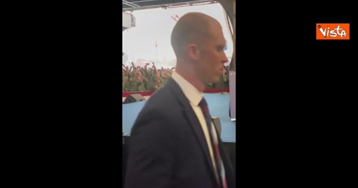 (Agenzia Vista) Giappone, 28 ottobre 2025 Il Presidente Usa Donald Trump visita i militari statunitensi alla base navale "George Washington" di Yokosuka in Giappone e balla tra i soldati la ormai celebre "Trump-Dance". X Fonte: Agenzia Vista / Alexander Jakhnagiev
