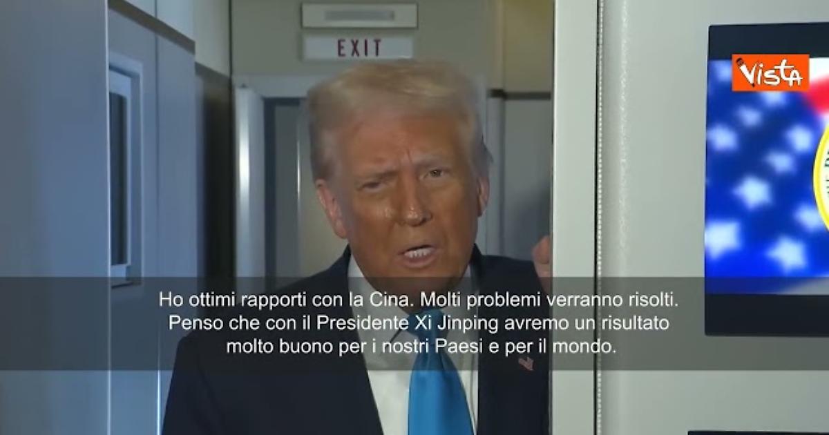 "Ho ottimi rapporti con la Cina. Molti problemi verranno risolti. Penso che con il Presidente Xi Jinping avremo un risultato molto buono per i nostri Paesi e per il mondo", lo ha detto Trump sull'Aiir Force One in viaggio verso la Corea del Sud dove incontrerĂ Xi Jinping.