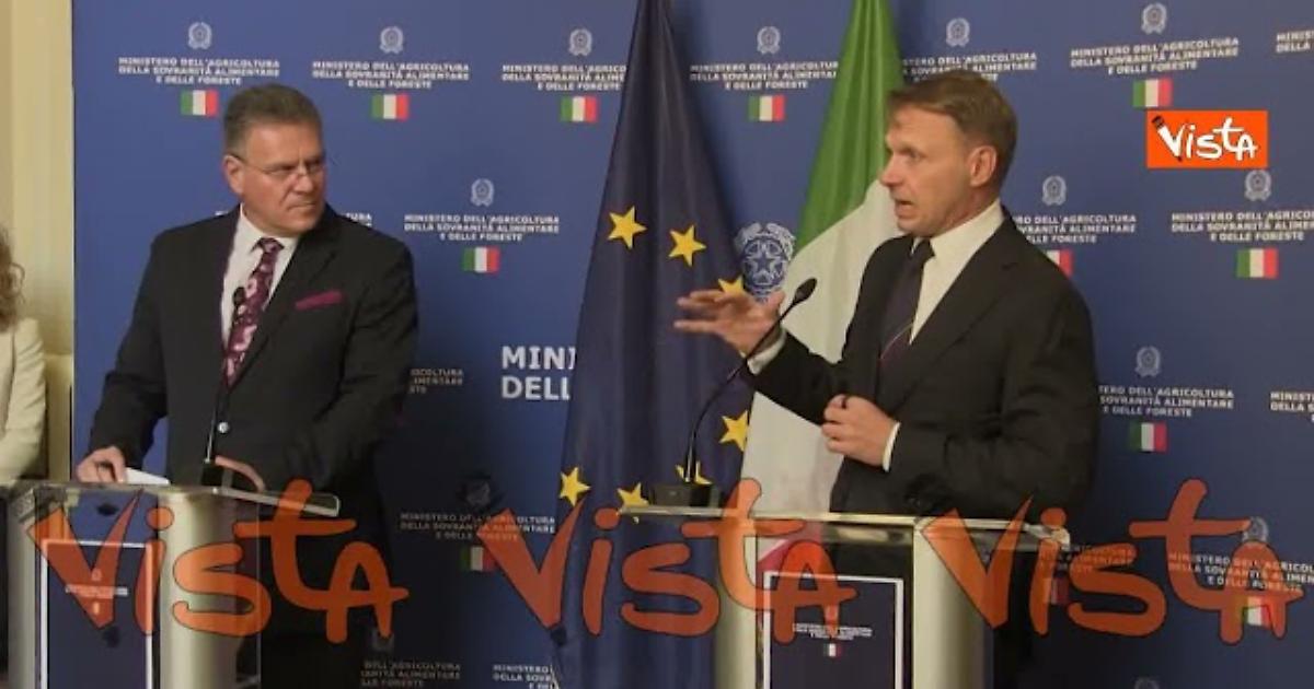 (Agenzia Vista) Roma, 31 ottobre 2025 "Abbiamo trattato poi il terzo argomento, che è quello della reciprocità, argomento per noi essenziale. Ciò che imponiamo ai nostri imprenditori in termini di fitofarmaci, di vicende legate alla cura e al benessere animale, non può essere ignorato dai Paesi che vogliono importare in Europa, abbattendo i costi di produzione in modo innaturale e facendo concorrenza alle nostre produzioni. Su questo abbiamo avuto degli impegni che immagino il commissario avrà modo di ribadire anche qui. Abbiamo trattato anche il tema degli accordi che devono arrivare. L’ Italia vuole lavorare in fase ascendente, che tradotto significa prevenire i problemi che emergono spesso dopo la redazione delle bozze, dei trattati o di direttive che possano incidere sui nostri sistemi. Lavorare prima, insomma" così il Ministro Lollobrigida, a margine dell'incontro con il commissario europeo Sefkovic al Ministero dell'Agricoltura. Fonte: Agenzia Vista / Alexander Jakhnagiev