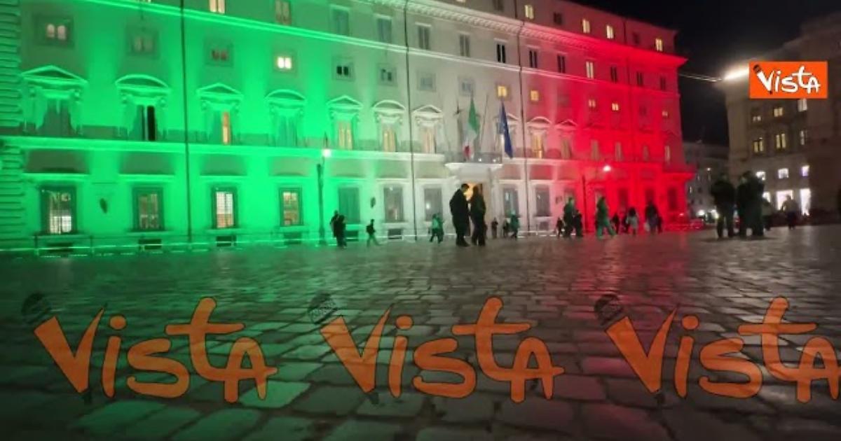 4 Novembre, Palazzo Chigi illuminato con il tricolore per la Festa delle Forze Armate