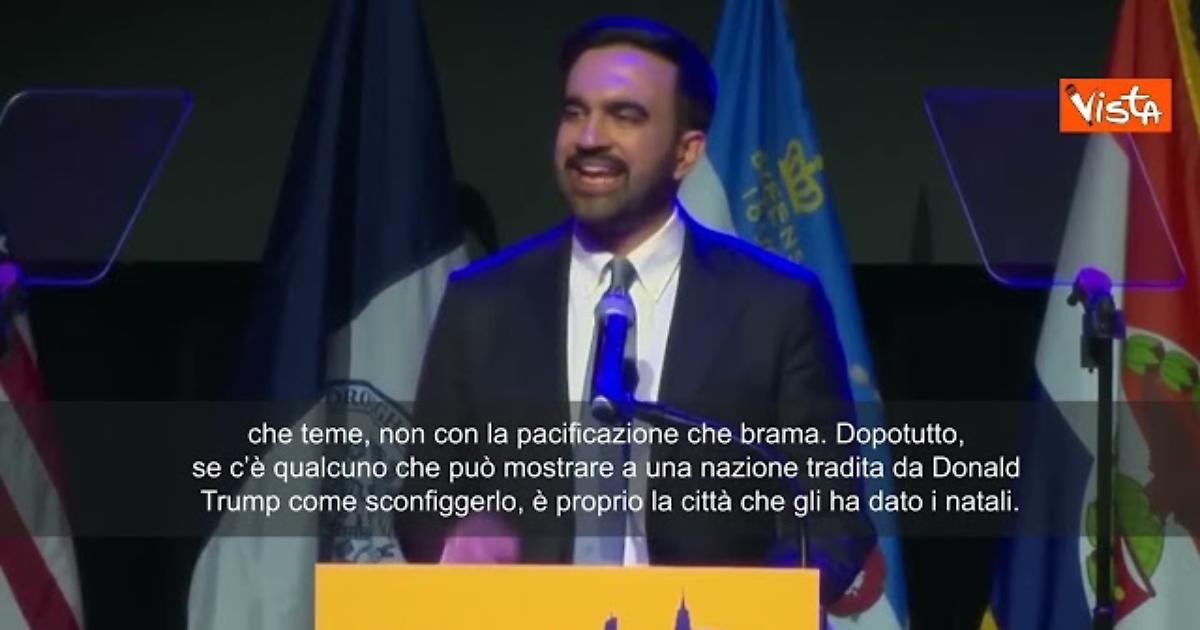 (Agenzia Vista) Usa, 05 novembre 2025 "Insieme daremo inizio ad una generazione di cambiamento. E se abbracciamo questo nuovo corso coraggioso invece di fuggirlo, possiamo rispondere all’oligarchia e all’autoritarismo con la forza che teme, non con la pacificazione che brama. Dopotutto, se c’è qualcuno che può mostrare a una nazione tradita da Donald Trump come sconfiggerlo, è proprio la città che gli ha dato i natali", così Zohran Mamdani, primo sindaco musulmano eletto a New York, nel suo discorso dopo la vittoria. X Fonte: Agenzia Vista / Alexander Jakhnagiev