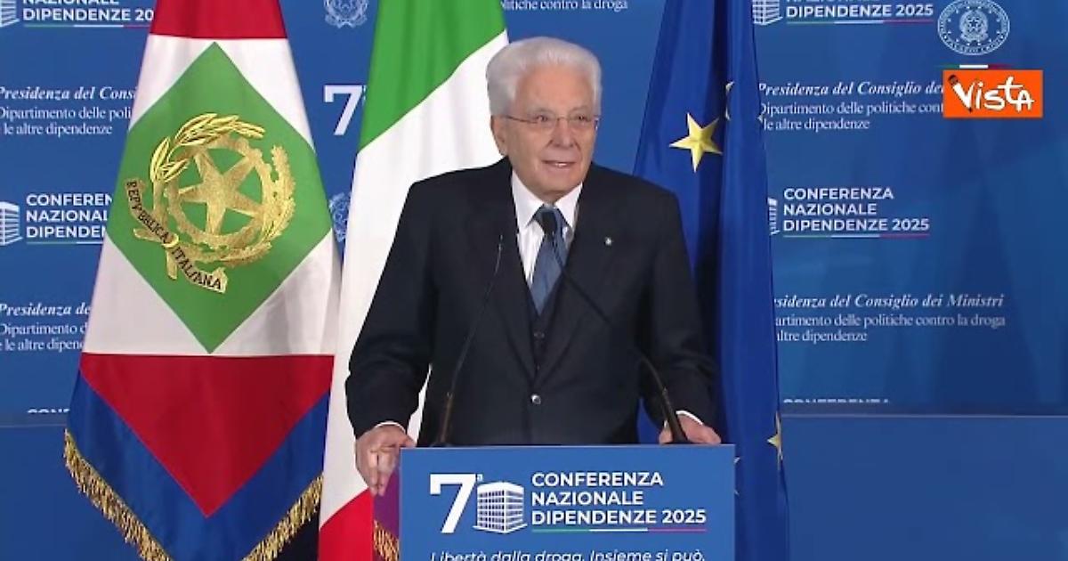 "La tragedia delle dipendenze, la tragedia delle vite distrutte della perversa presenza della criminalità organizzata richiede un impegno consapevole, un impegno costante nella determinazione, richiede anche un impegno corale. Nessuno si troverà solo perché l'impegno per combattere la droga è un fronte di libertà", lo ha detto il Capo dello Stato Mattarella parlando alla Conferenza sulle dipendenze.